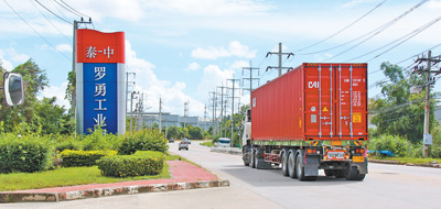 位于泰國(guó)“東部經(jīng)濟(jì)走廊”核心區(qū)域的泰中羅勇工業(yè)園發(fā)展迅速。圖為一輛貨車(chē)進(jìn)入羅勇工業(yè)園。 本報(bào)記者 孫廣勇攝 |