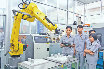 泰國(guó)積極提高人才培養(yǎng)層次,以滿足“東部經(jīng)濟(jì)走廊”對(duì)高級(jí)技術(shù)人員的需求。圖為在春武里職業(yè)技術(shù)培訓(xùn)中心參加培訓(xùn)的技術(shù)工人。 本報(bào)記者 孫廣勇攝 |