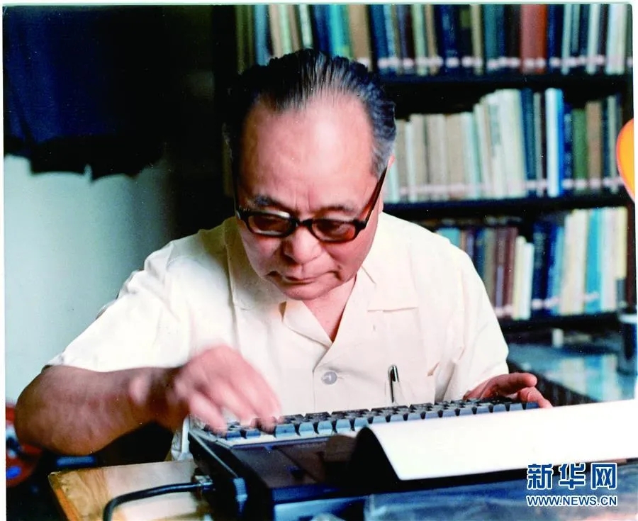 程開甲在打字機上撰寫論文(資料照片)。新華社發(fā)