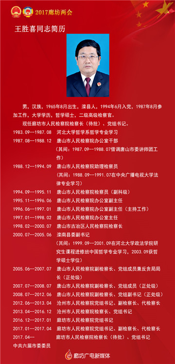 上一篇:(圖文版)廊坊市第七屆人大常委會(huì)主任、副主任、秘書長(zhǎng)簡(jiǎn)歷全公布 下一篇:(圖文版)陳平當(dāng)選廊坊市市長(zhǎng)!廊坊市長(zhǎng)、副市長(zhǎng)名單、簡(jiǎn)歷全公布