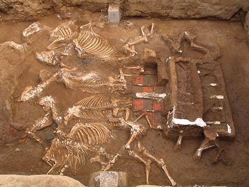 因?yàn)榘凑斩Y制,用六匹馬拉車是天子出行才能享受的待遇。正所謂“天子駕六”,它的出現(xiàn)意味著這座墓的主人身份異常的高貴。