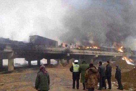 該村民稱,早上5點(diǎn)多,她和多名村民趕到現(xiàn)場,看到前后相連的多輛車著火,高速路旁及高速路橋下的樹和柴草堆都被引燃,“火勢高過當(dāng)?shù)仄椒?rdquo;。村民稱,爆炸聲持續(xù)4個(gè)多小時(shí),一直到今天上午8點(diǎn)多。