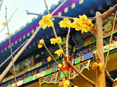 公園里黃色、粉色的花蕾含苞待放,點(diǎn)綴出春的燦爛,與古樸典雅的慈悲庵、名亭園相互映襯,且香且靜。目前,華夏名亭園“江山無(wú)限景,都聚一亭中——中國(guó)亭文化展”前的蠟梅即將進(jìn)入盛花期,慈悲庵下的蠟梅也將陸續(xù)開放。