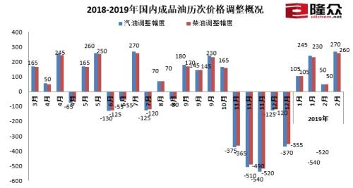 2018-2019年國內(nèi)成品油歷次價(jià)格調(diào)整概況。來源:隆眾資訊