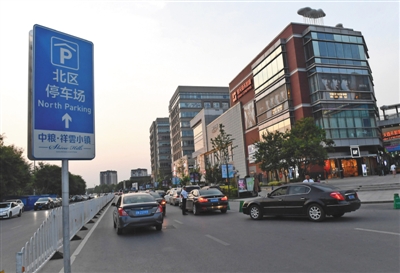 昨日(11日)19時(shí)左右,順義祥云小鎮(zhèn)深夜食街附近道路車輛行駛緩慢。停車場(chǎng)和路邊停車位都已飽和,前來購(gòu)物、就餐的市民難尋車位。 新京報(bào)記者 吳寧 攝
