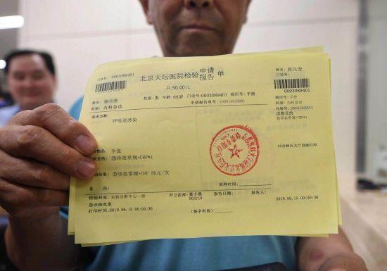 北京醫(yī)耗聯(lián)動綜合改革6月15日零時正式實施。圖為北京天壇醫(yī)院在完成信息系統(tǒng)切換后打出第一份執(zhí)行新價格的結(jié)算單據(jù)?! ?/p>