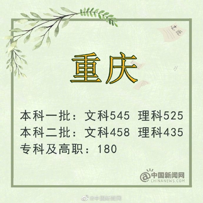 23日,重慶市公布2019年全國普通高校各類招生錄取最低控制分?jǐn)?shù)線。第一批本科文史類545分、理工類525分;第二批本科文史類458分、理工類435分;文高職??婆?80分。