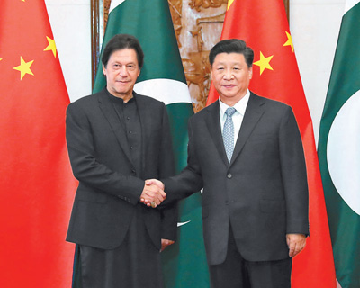 10月9日,國家主席習(xí)近平在北京釣魚臺國賓館會見巴基斯坦總理伊姆蘭·汗。 |