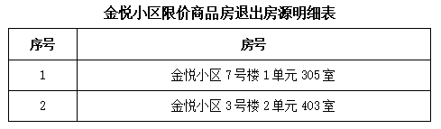 中號(hào)家庭自愿放棄購(gòu)買退出的房源共計(jì)2套,均為金悅小區(qū)限價(jià)商品房。